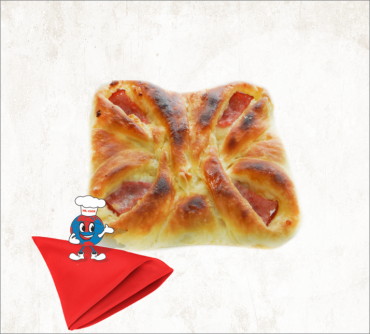 ცომი ნახევრადფენოვანი, ყველი იმერული, ლორი, მაიონეზი, კეტჩუპი,