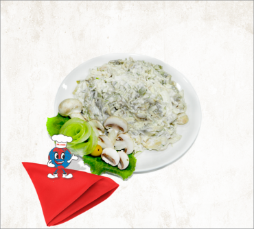 ხის სოკო, სტაფილო,ხახვი, ბულგარული წიწაკა წითელი, ქინძი, ოხრახუში, კამა, მარილი, შავი პილპილი, ზეთი