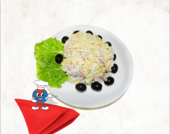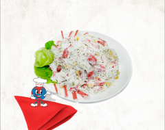 ბრინჯი, კრაბიs ჩხირები, ბარდა, უცხო სუნელი, კამა, მარილი, მაიონეზი, შავი პილპილი