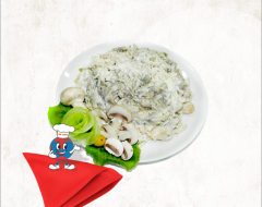 ქათმის რბილი, კიტრი, ქინძი, შავი პილპილი, უცხო სუნელი, მარილი, მაიონეზი