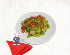 წითელი ლობიო, ძმარი, ნიორი, წითელი წიწაკა დაფქვილი, ხახვი, ნიგოზი, მარილი, უცხო სუნელი, ნედლი ქინძი, ხმელი ქინძი