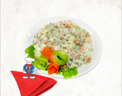სტაფილო, კარტოფილი, კიტრის მჟავე, მწვანე barda, კამა, მწვანე ხახვი, კვერცხი, მარილი, შავი პილპილი, მაიონეზი