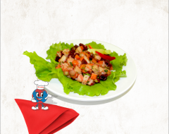 კარტოფილი,მწვანე ხახვი, ხახვი, კიტრის მწნილი, სტაფილო, ბულგარული წიწაკა მწვანე, ზეთი,შავი პილპილი, მარილი