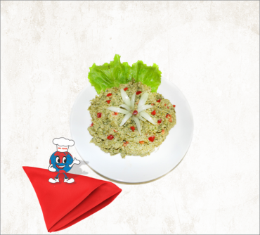 ნიგოზი, მწვანე ლობიო, ხახვი, ქინძი ხმელი, უცხო სუნელი, ნედლი ქინძი, წითელი დაფქვილი წიწაკა, მწარე მწვანე წიწაკა, ზეთი, მარილი