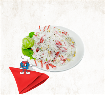 ბრინჯი, კრაბიs ჩხირები, ბარდა, უცხო სუნელი, კამა, მარილი, მაიონეზი, შავი პილპილი
