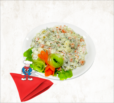 სტაფილო, კარტოფილი, კიტრის მჟავე, მწვანე barda, კამა, მწვანე ხახვი, კვერცხი, მარილი, შავი პილპილი, მაიონეზი