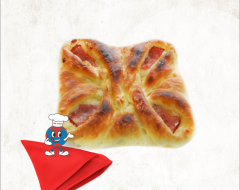 შემადგენლობა: ცომი ნახევრადფენოვანი, ყველი იმერული, ლორი, მაიონეზი, კეტჩუპი,
