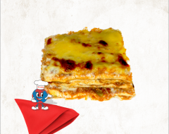 საქონლის ხორცი, ხახვი, ორეგანო, პომიდორი, შავი პილპილი, რძე, კარაქი,ლაზანიის ფირფიტები, პურის ფქვილი, მარილი
