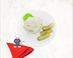 კარტოფილი,მწვანე ხახვი, ხახვი, კიტრის მწნილი, სტაფილო, ბულგარული წიწაკა მწვანე, ზეთი,შავი პილპილი, მარილი